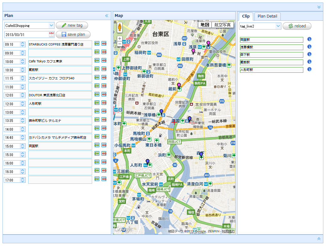 (7) タグをつけた予定リストを読み込んで、地図表示・編集